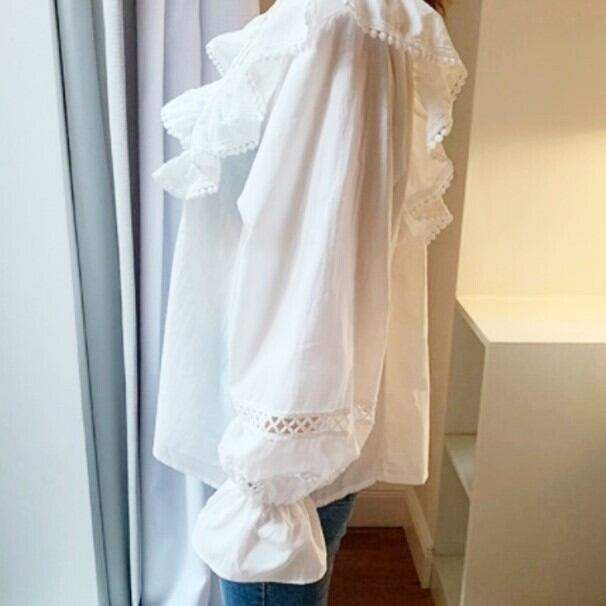 ベルスリーブ レース Vネック ブラウス