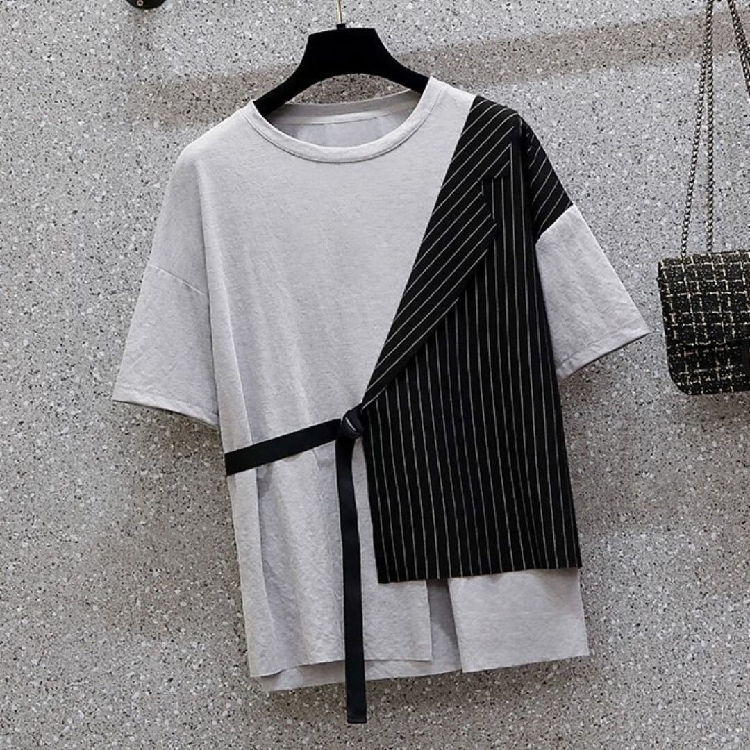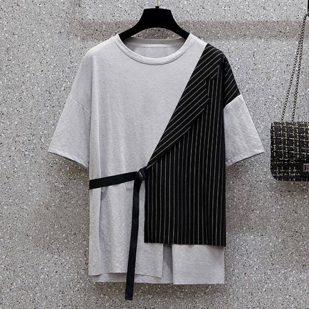 不規則ストライプ ステッチレース ツーピース