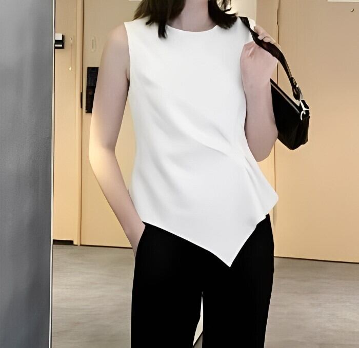アシンメトリー ノースリーブ シフォンシャツ