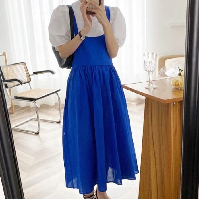 ルーズパフスリーブシャツ+ビッグスイングドレス