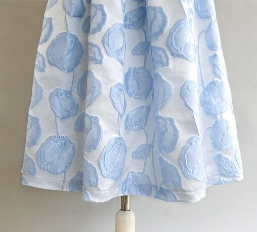 オリジナル ライトブルー ビッグフラワー フレアスカート