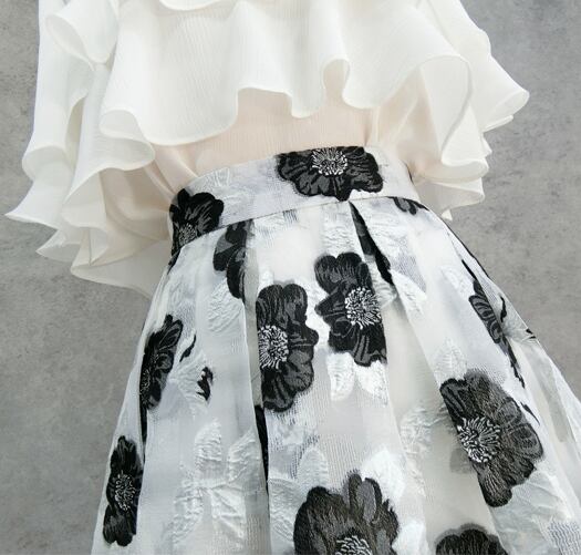 オリジナル 立体 ブラックフラワー フレアスカート