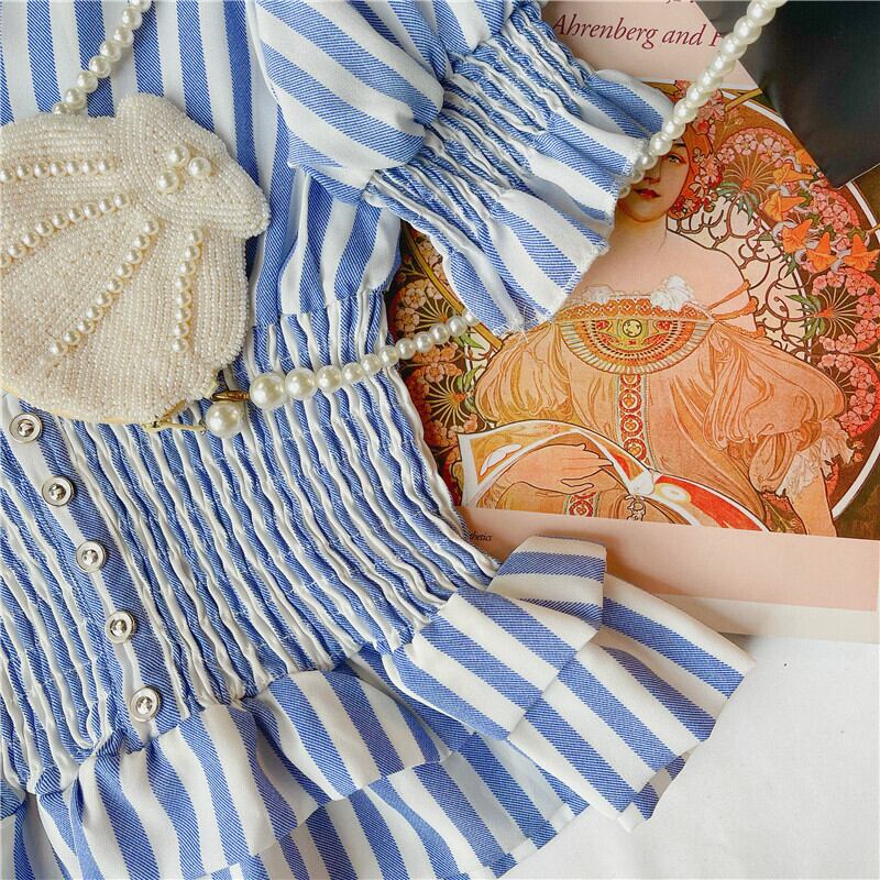 レトロ ネイビー ガーリー ランタンスリーブ シャツ 半袖