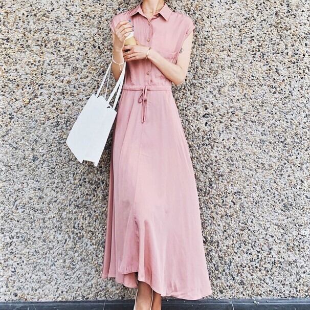 フレンチ ノースリーブ シフォンドレス