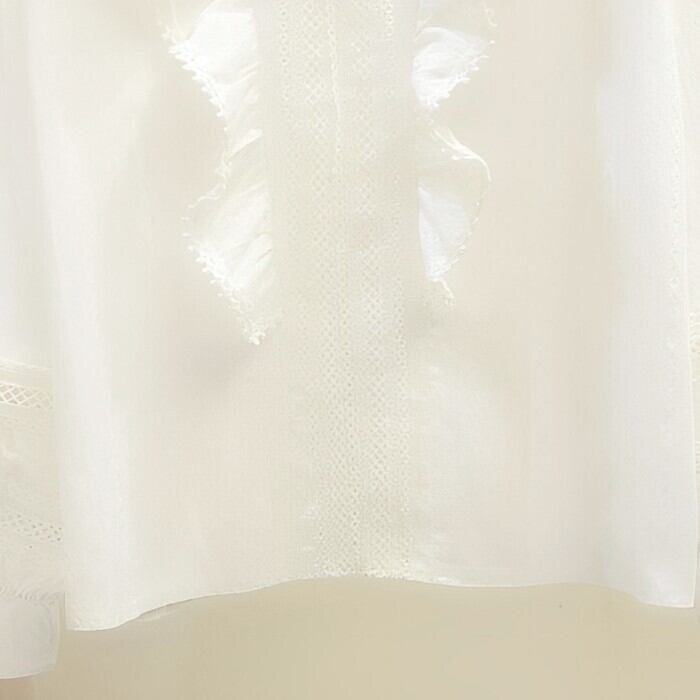 フリル レースステッチ Vネック シャツ
