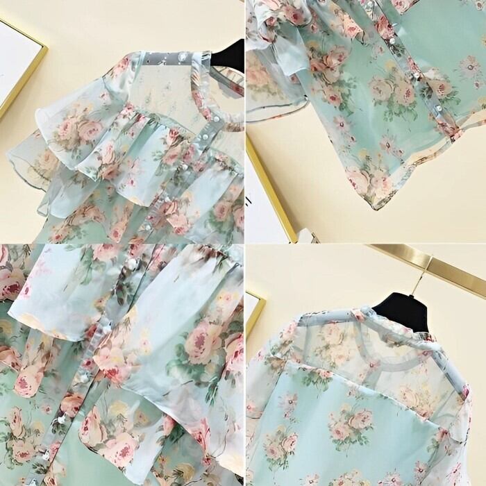 フリル フローラル シフォン 半袖 シャツ