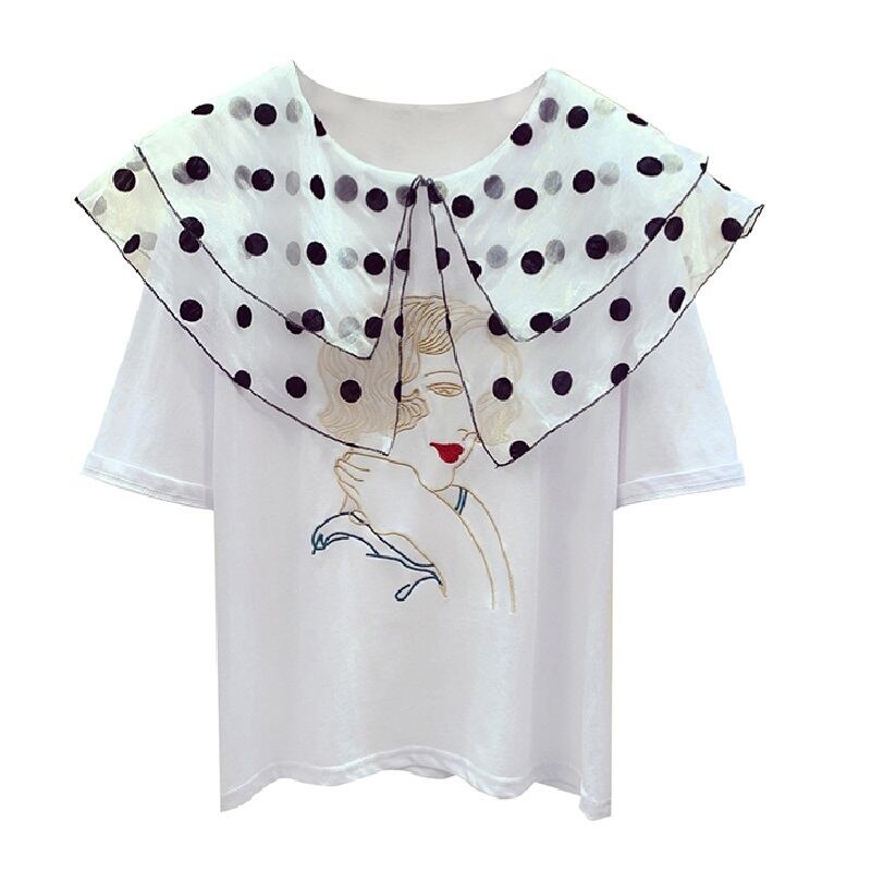 水玉 メッシュ ドールカラー 刺繍 Tシャツ