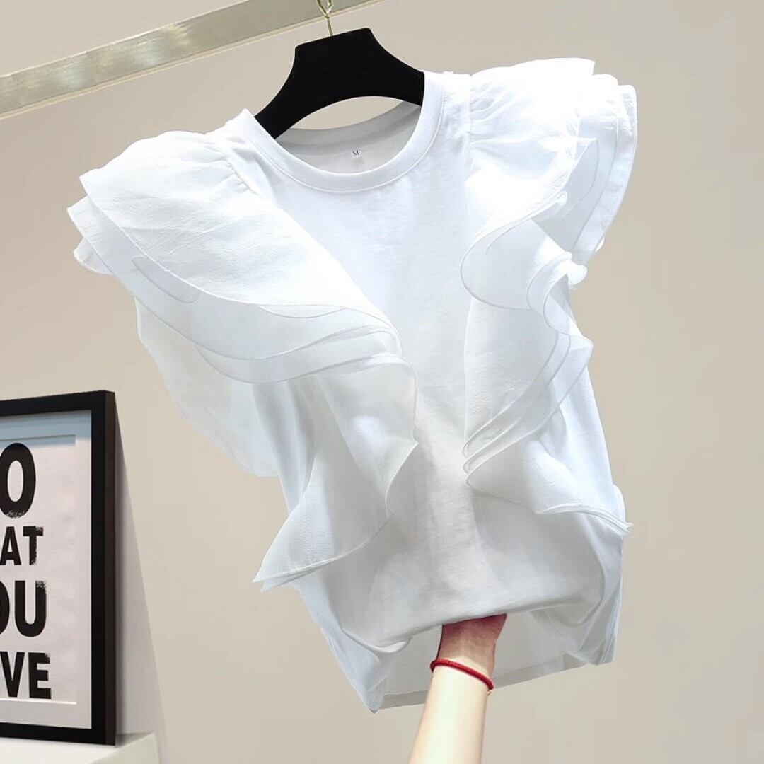 メッシュステッチ フリル ルーズTシャツ