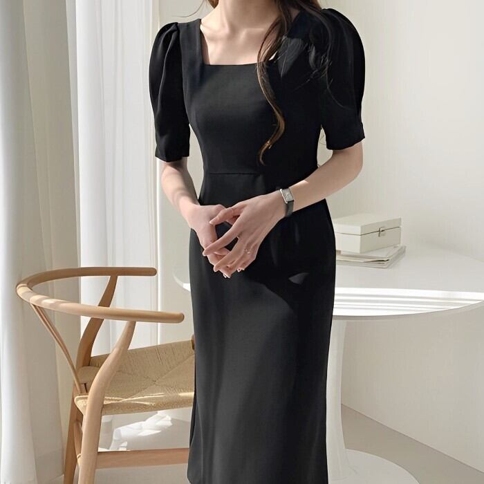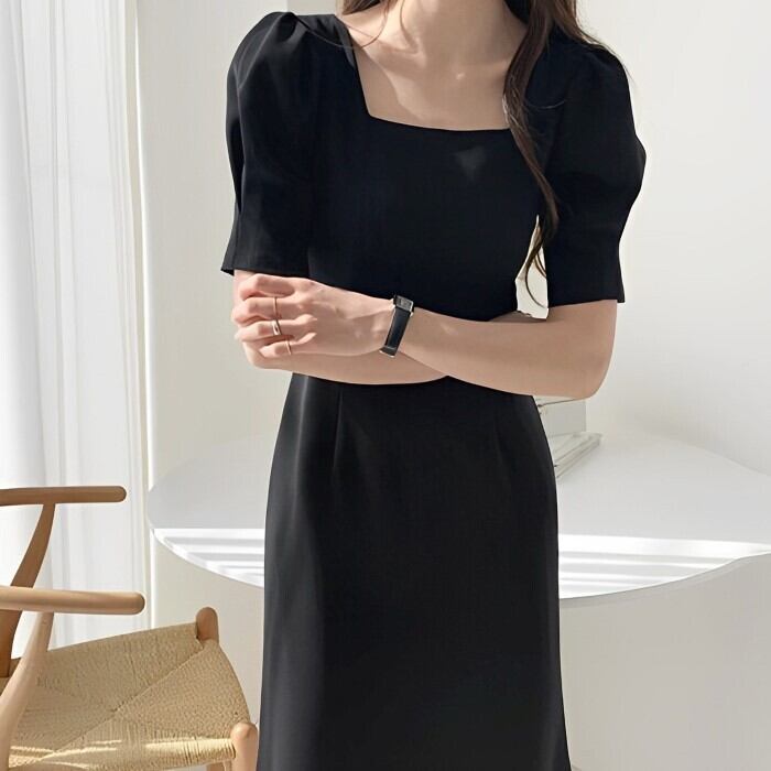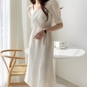 スクエアカラー パフスリーブドレス
