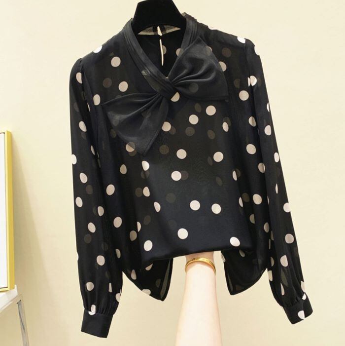 【MA-0935】水玉レース 長袖 シフォンシャツ