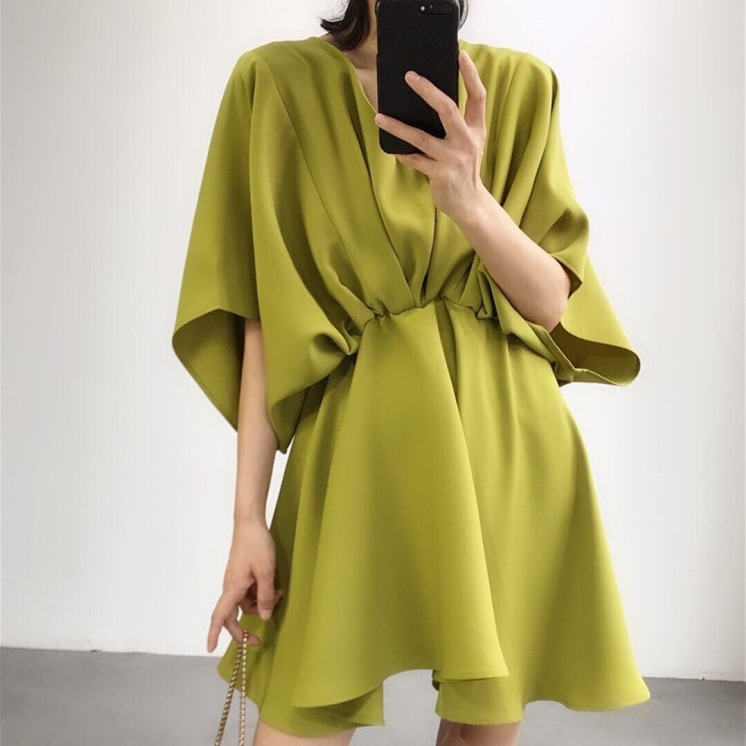 ルーズウエスト Vネックドレス