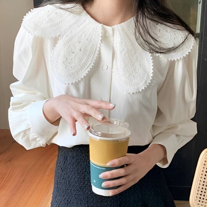 フックフラワー パフスリーブ シャツ