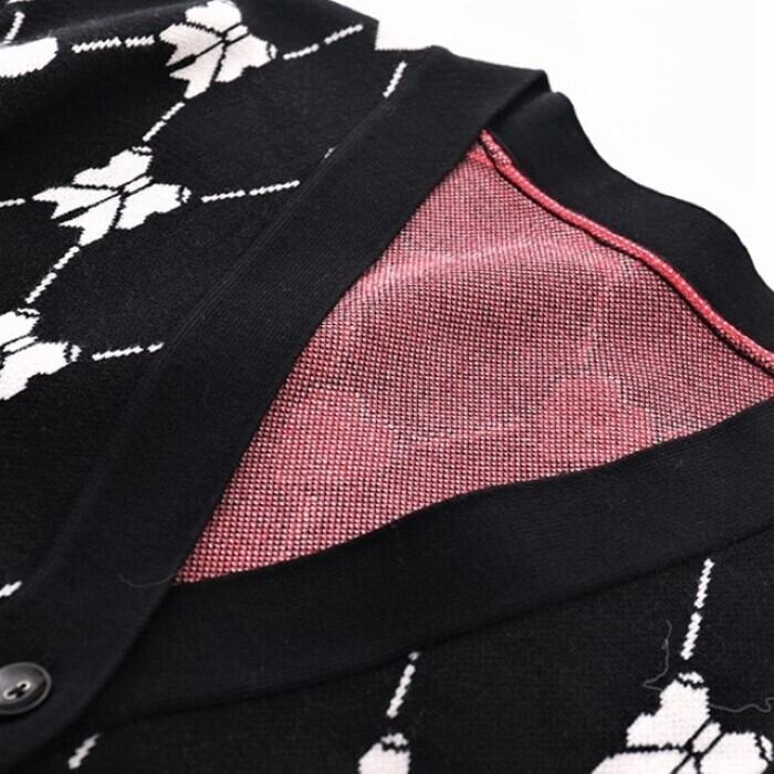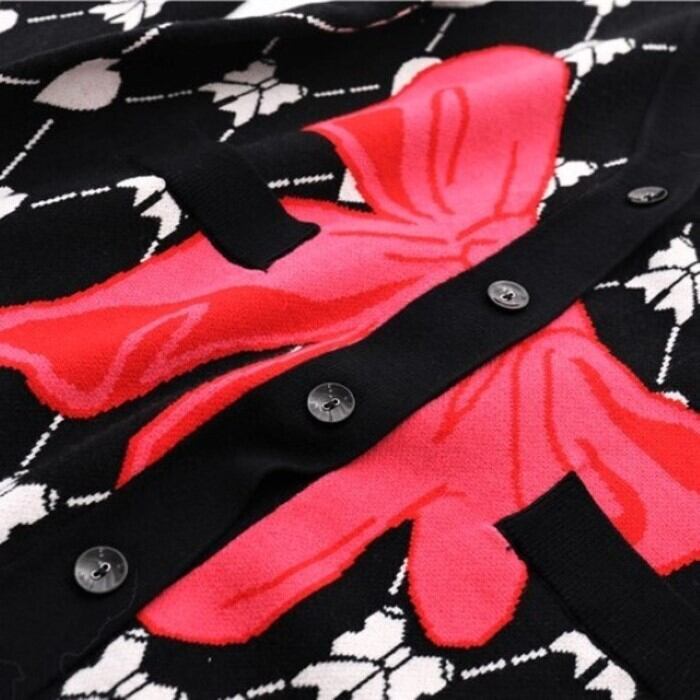 リボン ジャカード Vネック カーディガン