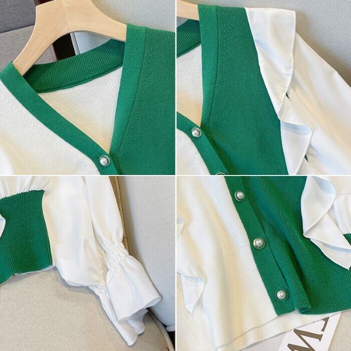 シフォンスリーブステッチ カーディガン