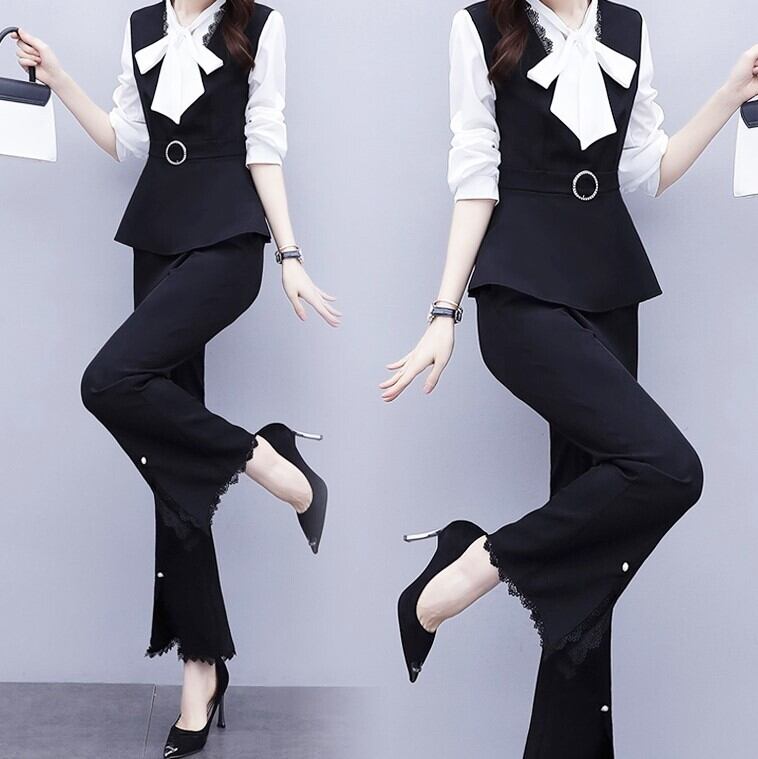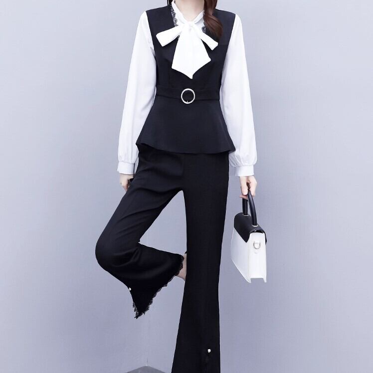 フリルブラウス+フレアパンツ ツーピーススーツ