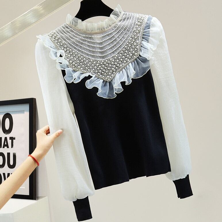 ビーズ シフォンステッチ フリル ボトミングシャツ