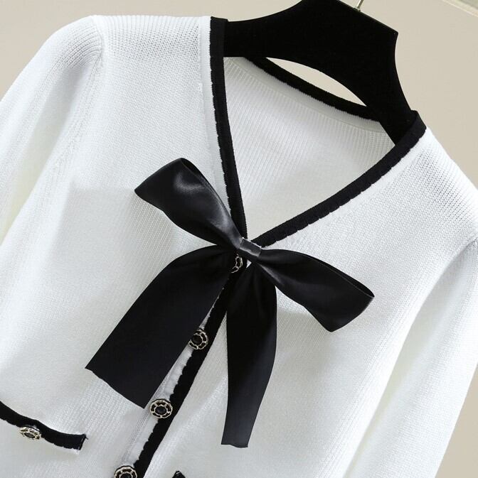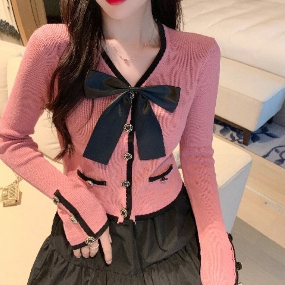 リボン ショート ストレッチ カーディガン