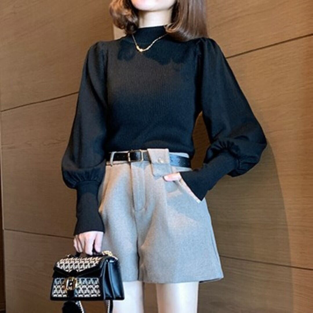 6色♬ ハーフタートルネック ランタンスリーブ セーター