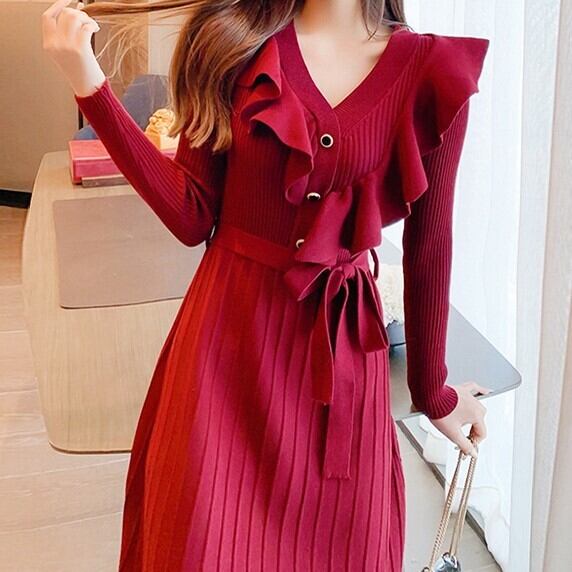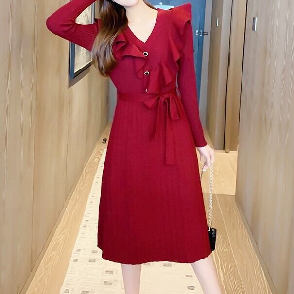 フェミニンで大人可愛い♡フリルミドル丈ニットワンピース♬