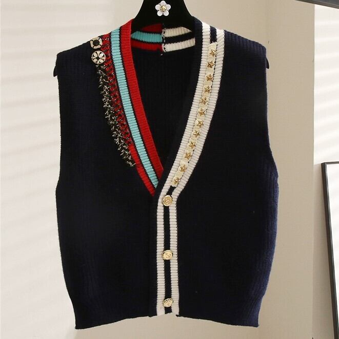 柔らかなニット素材とオリジナルのチェーンスター装飾が特徴的なおしゃれなベストです。