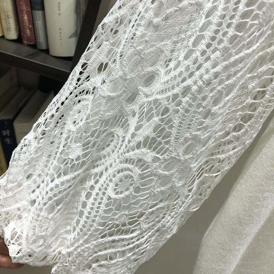 レース ランタンスリーブ ステッチ セーター