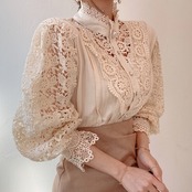 スタンドカラー ヘビーレース シャツ