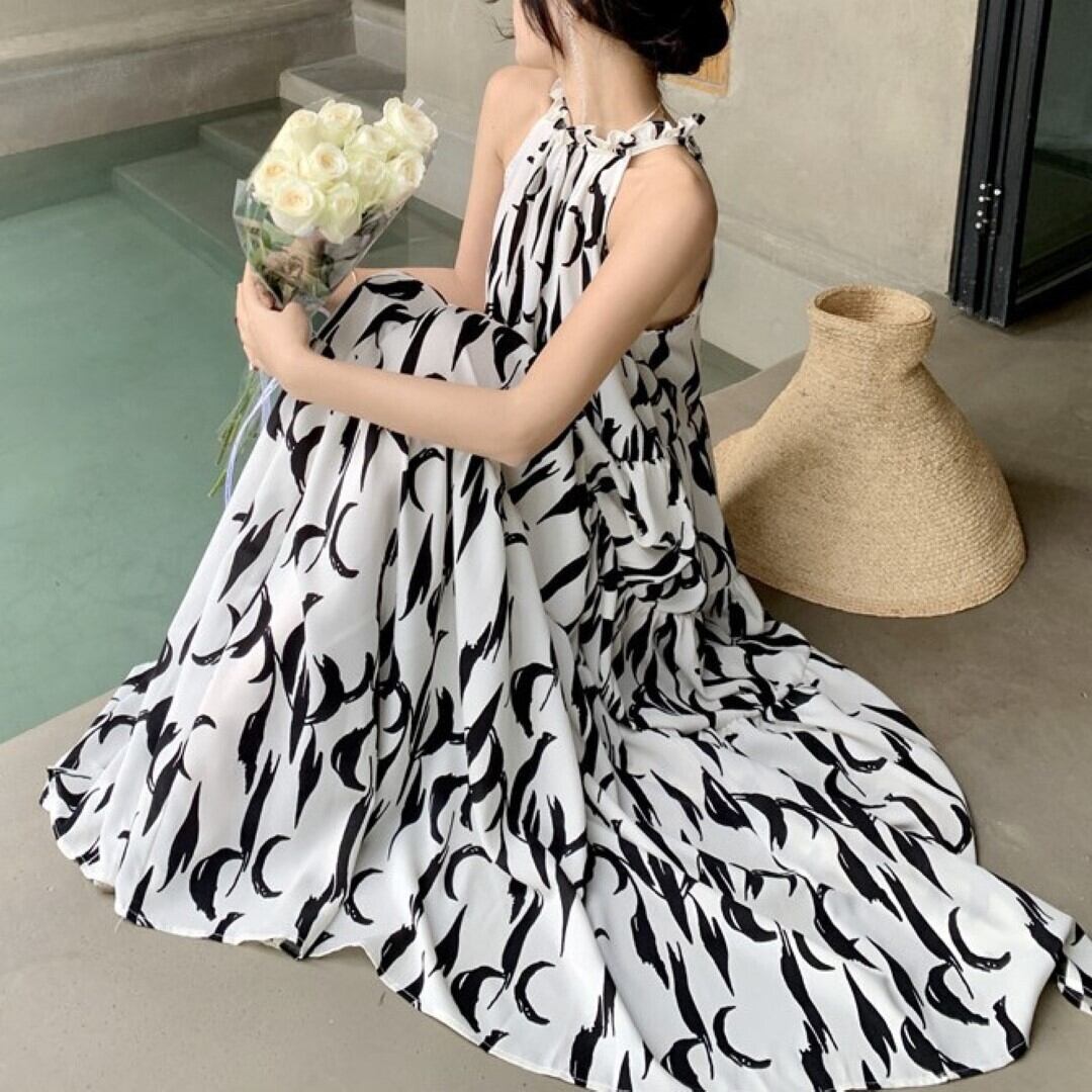 ホルターネック カットショルダーノースリーブ ワンピース