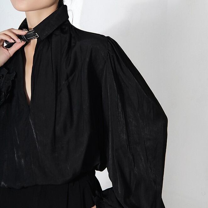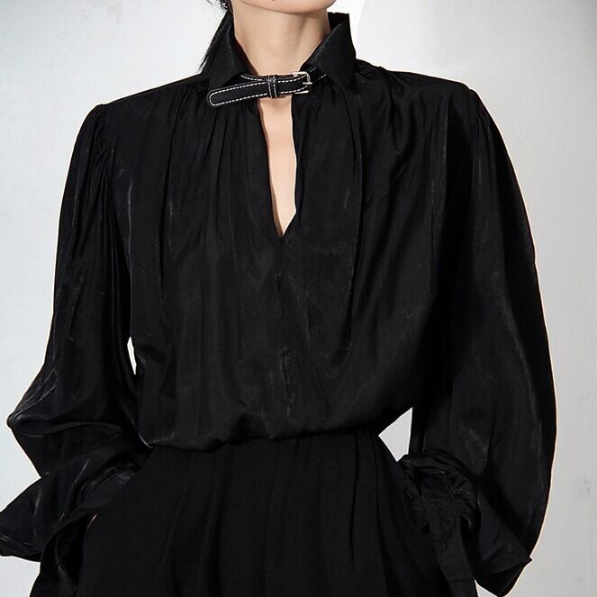 プリーツ レースアップ シャツ