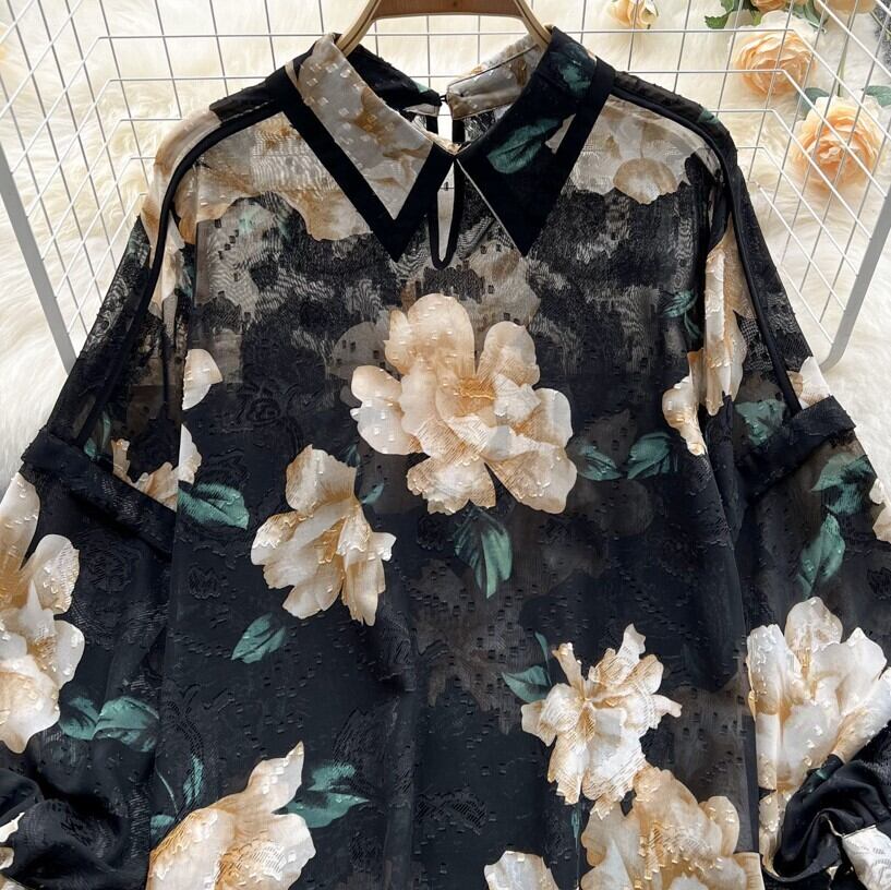フラワー ランタンスリーブ シャツ
