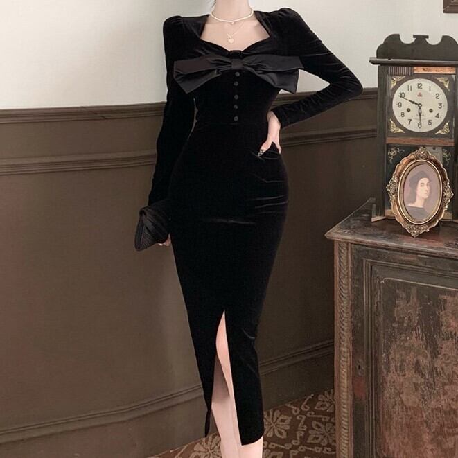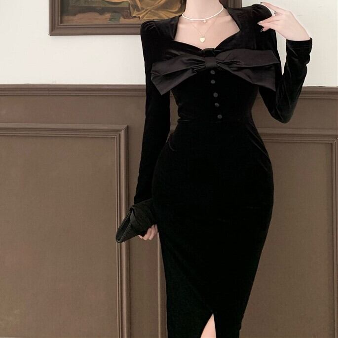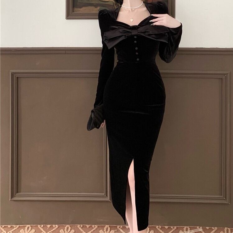 ベルベット リボン ロング ワンピース