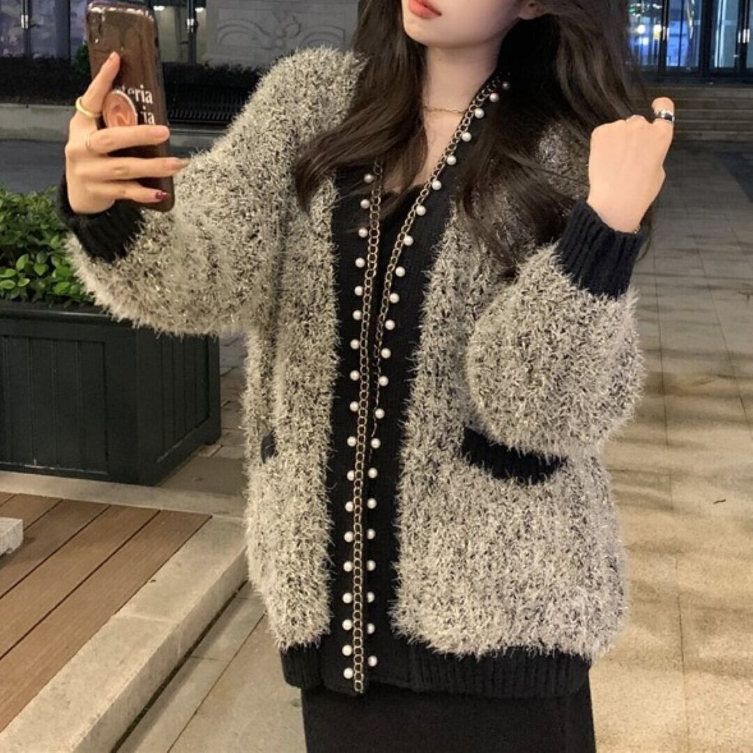 パールラメ ニット カーディガン