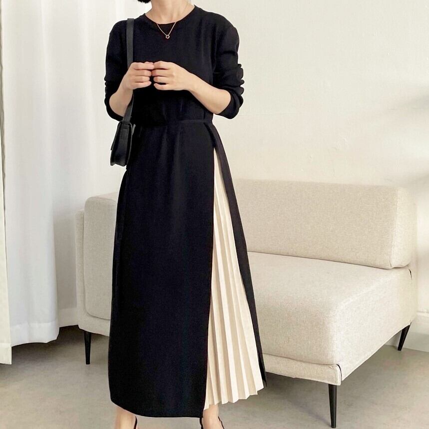 ツーピース風 ロング プリーツ ワンピース