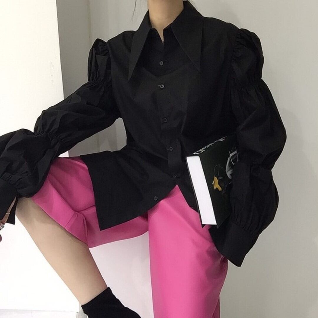 パフスリーブ シングル ブレストシャツ