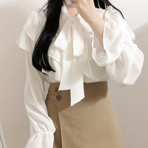 フリル リボン シャツ