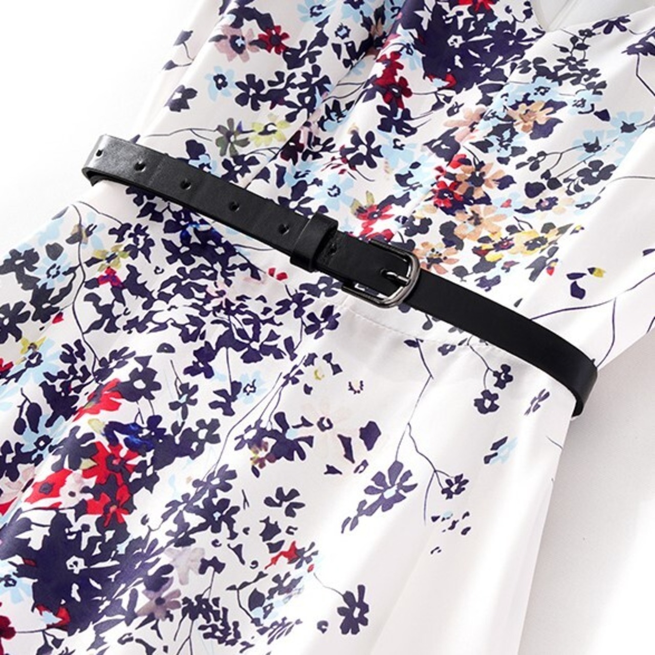 Vネックノースリーブ フローラルドレス