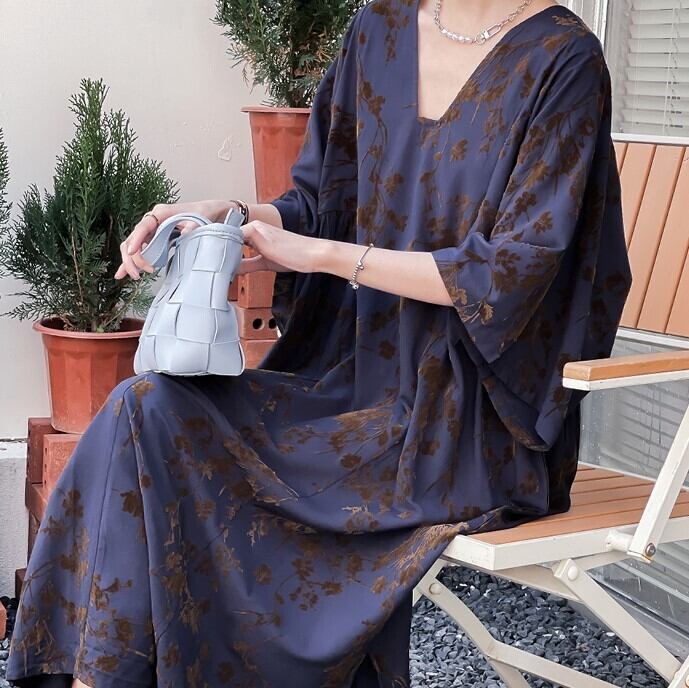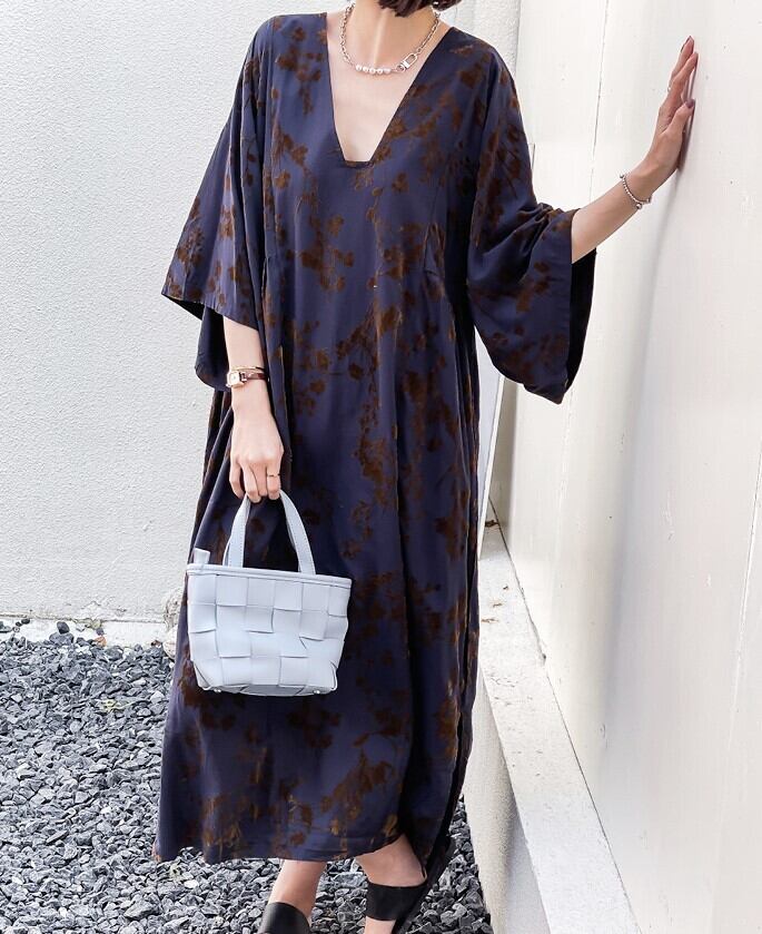 エキゾチック フラワー ワイドスリーブ ワンピース