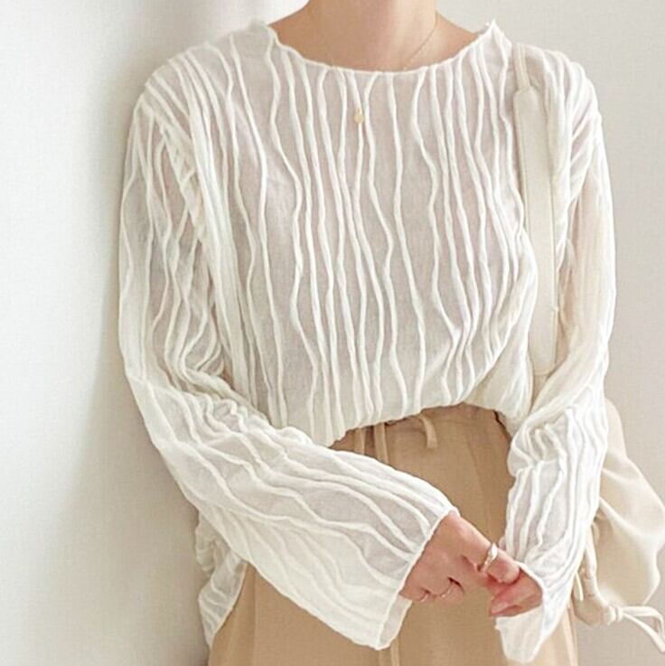 立体ストライプ 長袖 トップス