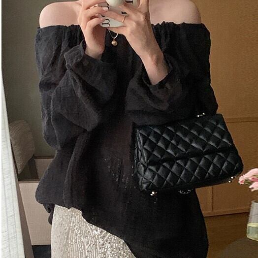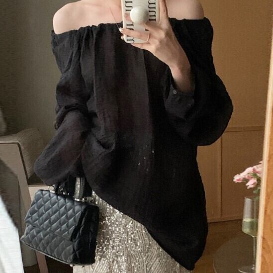 オフショルダー ブラック シャツ