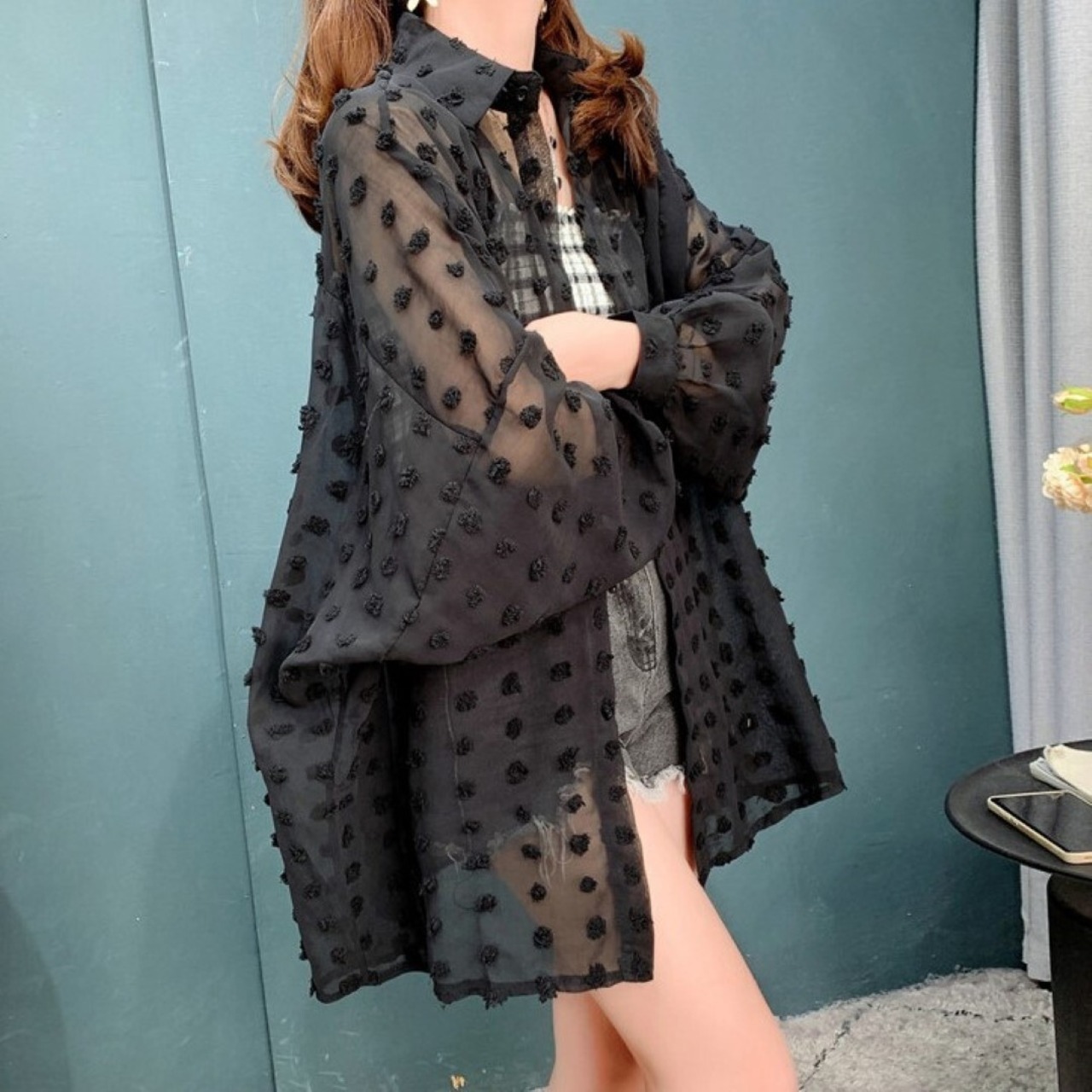 シースルー ドット ふんわりシャツ