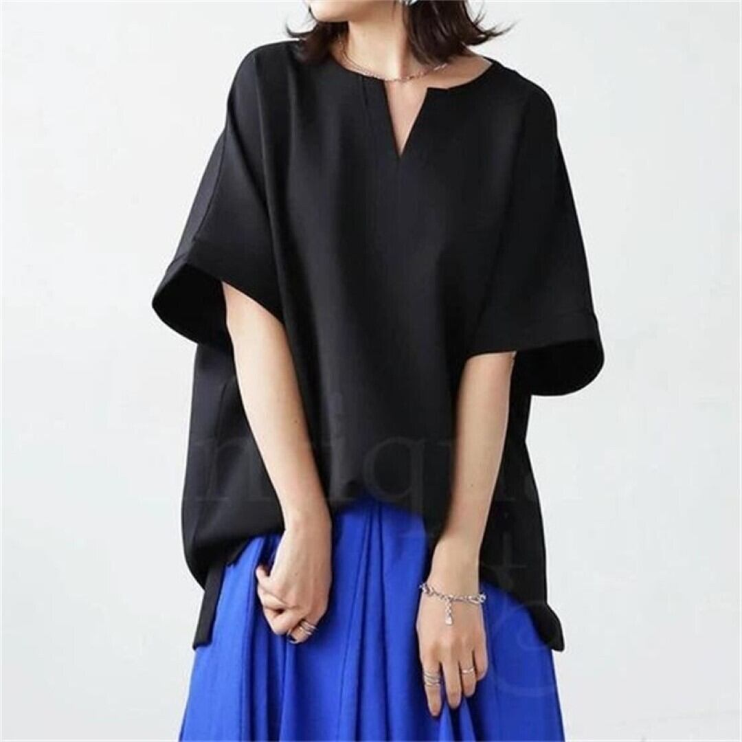 Vネック サイドスリット トップス