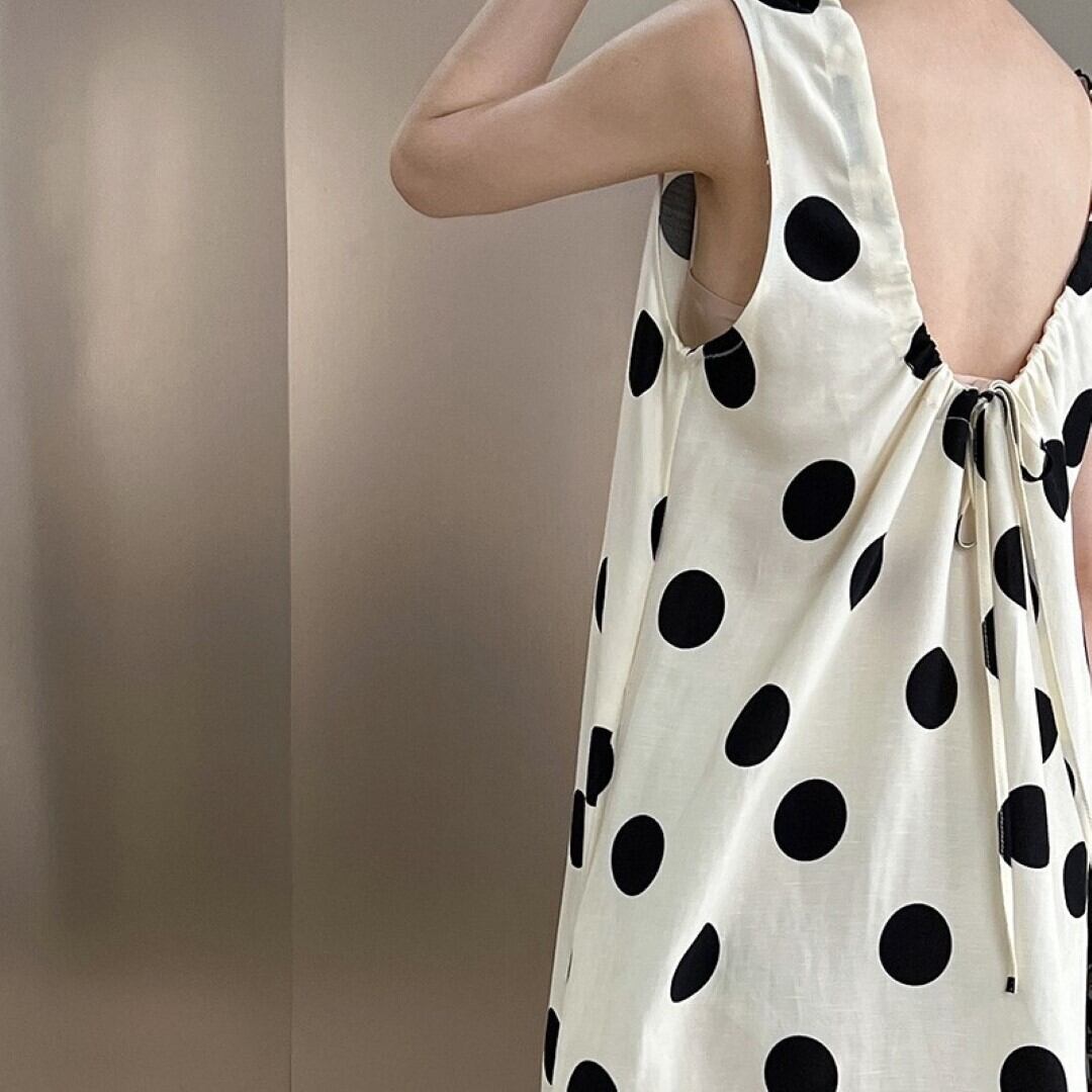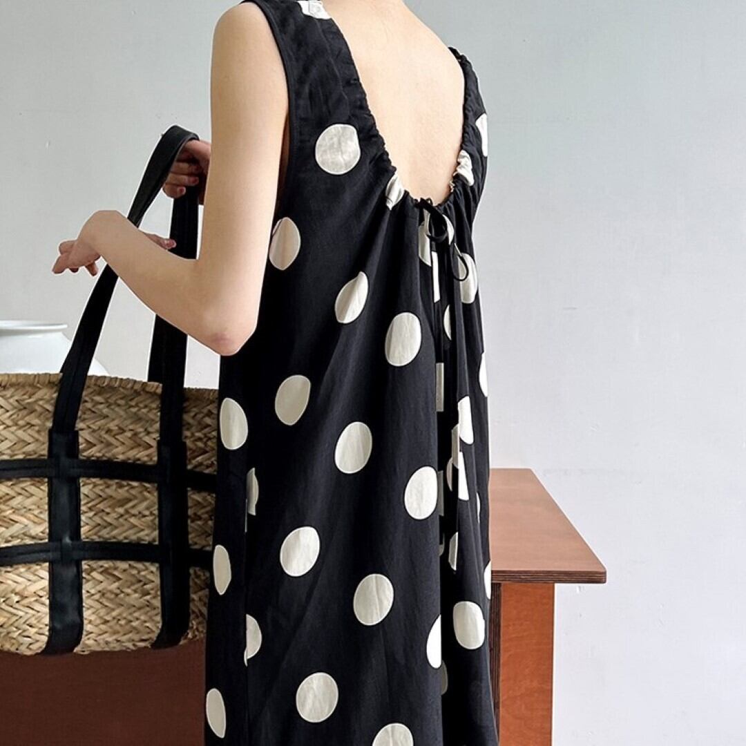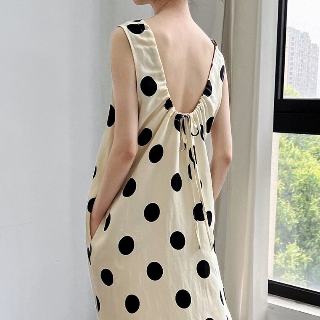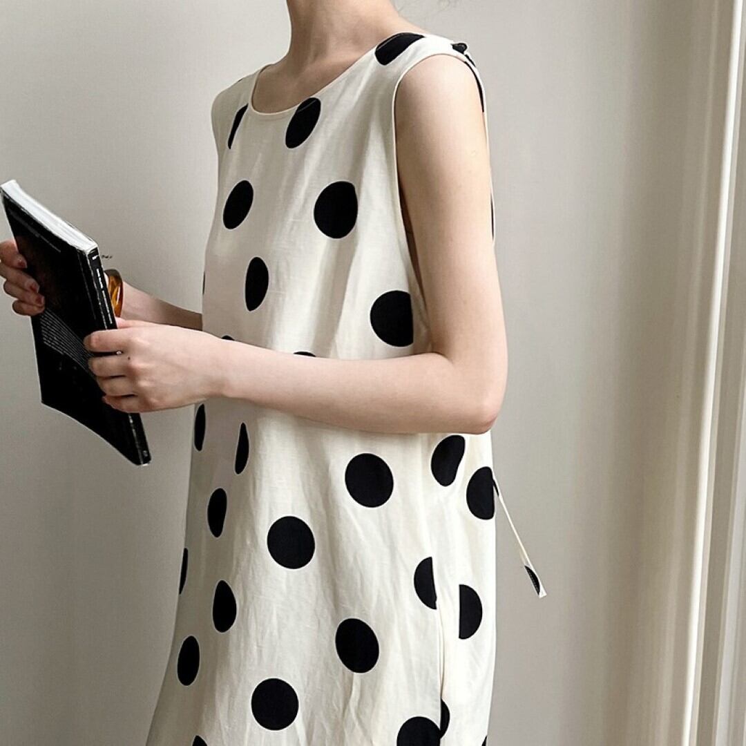 水玉 ノースリーブ ワンピース