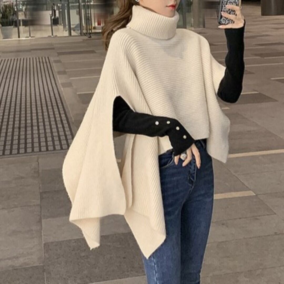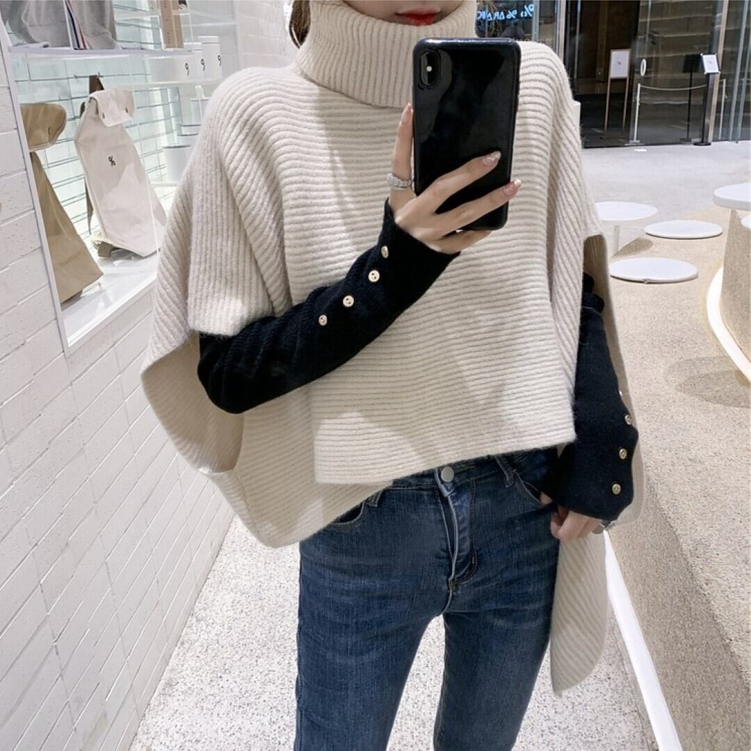ハイカラー ショール プルオーバー ニット